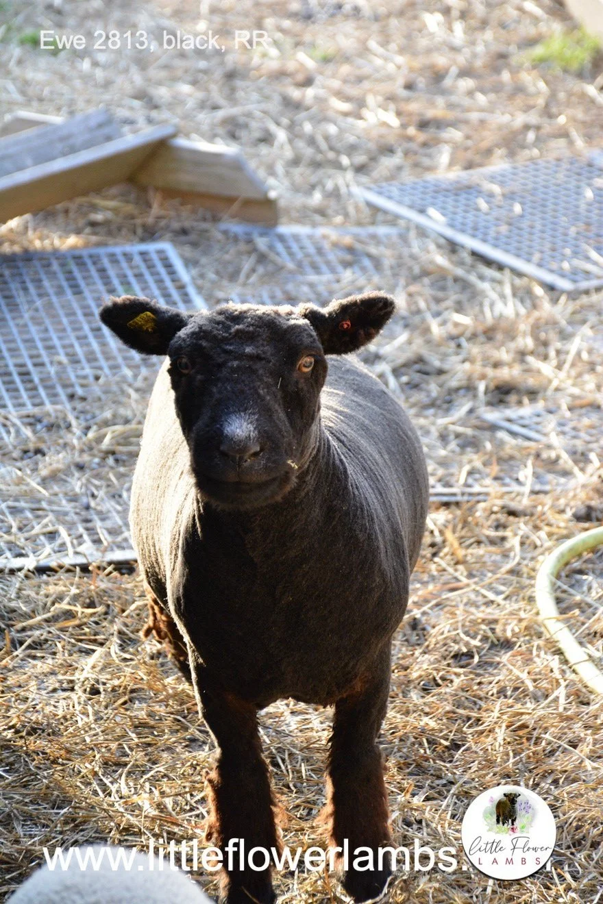 Ewe 2809, black, twin, 4-07-2024, RR, NABSSAR Registered, excellent mother, solid, easy lambing, good bite