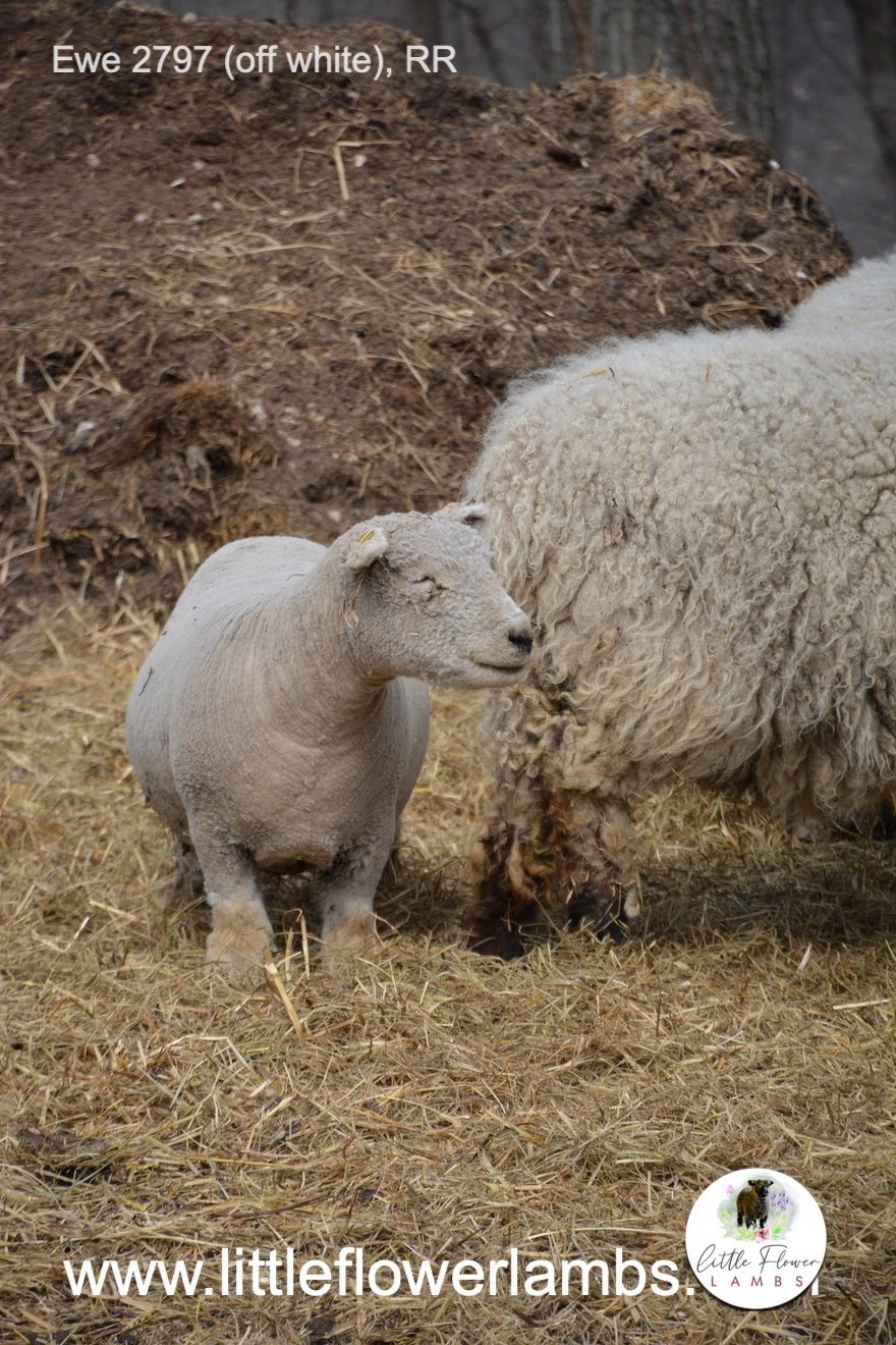 Ewe 2797, off white, single, 6-17-2021, RR, NABSSAR Registered, sound mother, lovely type, easy lambing, good bite