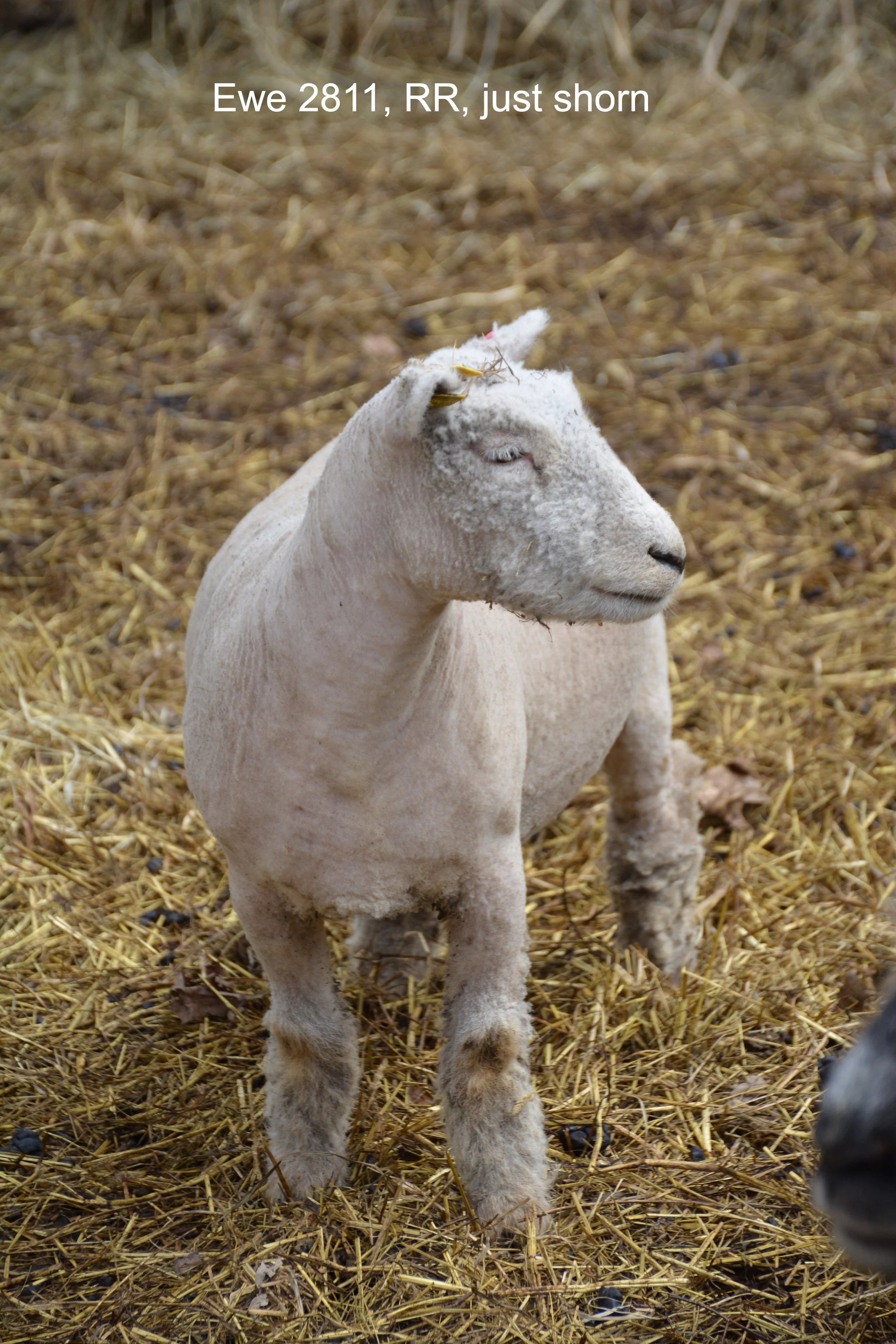 Ewe 2802, off white, twin, 3-31-2022, RR, NABSSAR Registered, excellent mother, extremely hardy, easy lambing, scar, good bite